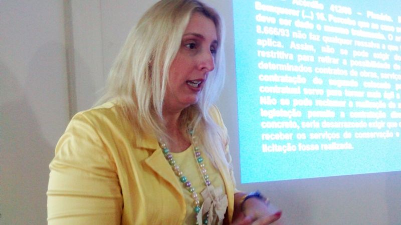A palestrante vinda de Jundiaí (SP), Simone Zanotello de Oliveira, é advogada, professora universitária na área de Direito Administrativo e português jurídico trabalha na administração pública durante muitos anos e hoje faz assessoria para órgão públicos e empresas privadas na área de licitações e contratos. Ela conta das suas expectativas sobre o curso. “Espero desenvolver nos alunos um espírito crítico de avaliações em cima das ações que eles vão fazer nos processos para aplicar sancionamentos, analisar recursos. Percebo que o grupo está bem misto, com pessoas que são da área há algum tempo e outros que estão conhecendo o assunto agora. Eles estão bastante envolvidos e participando das atividades”, afirma.