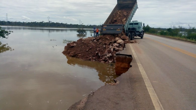 Por conta das fortes chuvas na região, parte da margem da rodovia começou a ceder. “Constatamos sérios danos em uma extensão de 150 metros do lado esquerdo da pista, sentido Guajará-Mirim. Além das constantes chuvas, o trânsito de veículos pesados ajudou a desestabilizar a lateral da pista, fazendo com que o solo cedesse”, afirmou Santos.