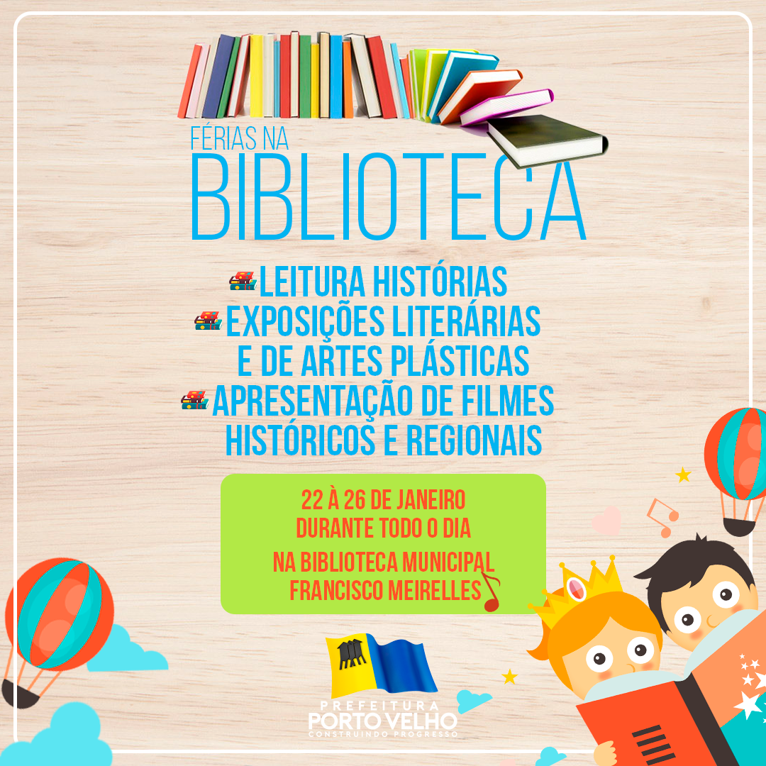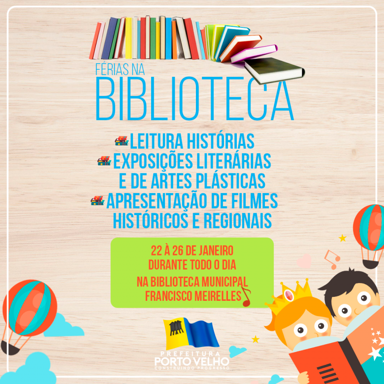 A biblioteca municipal Francisco Meirelles, de Porto Velho, realiza de segunda-feira (22) a sexta-feira (26) a atividade ‘Férias na Biblioteca’. A proposta é envolver famílias, estudantes e leitores com leitura infantil, contação de histórias, exposições literárias e de artes plásticas, além de apresentação de filmes históricos e regionais.