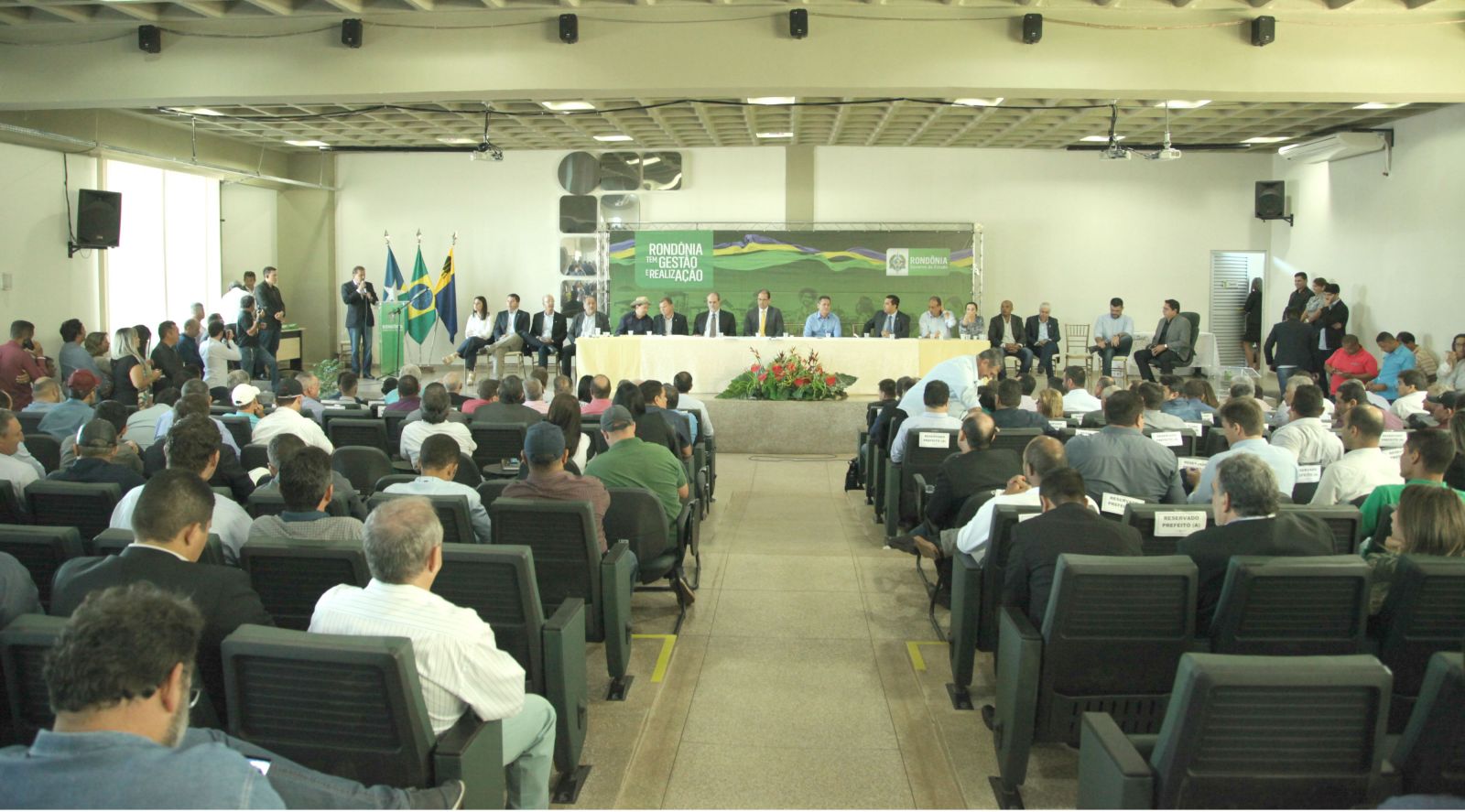 A assinatura dos convênios beneficiando os municípios ocorreu na manhã desta sexta-feira, 8, no auditório do Ifro/Calama, em solenidade que contou com a presença do prefeito Hildon Chaves, do governador Daniel Pereira, desembargador Walter Waltemberg, dos deputados federais Marcos Rogério, Mariana Carvalho, Marinha Raupp, Garçon, Nilton Capixaba, Luís Claudio, Lúcio Mosquini e do senador Ivo Cassol, Acir Gurgacz. Prefeitos de 47 municípios também participaram do evento.