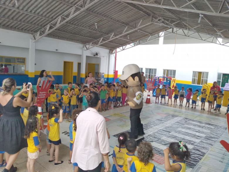 Utilizando tapete pedagógico e os bonecos “Semtranzinho” e “Semtranzinha”, a equipe da Divisão de Educação para o Trânsito (DET) ministrou palestra de forma lúdica e bem dinâmica, abordando a segurança no trânsito voltada para pedestres, condutores e ciclistas.