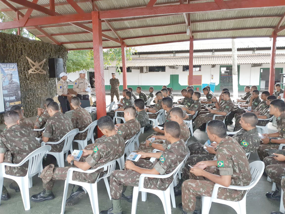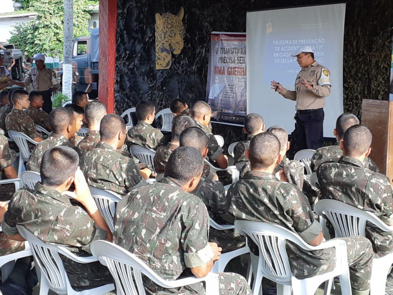 Agentes da Divisão de Educação para o Trânsito da Semtran, estiveram no quartel da 17ª Brigada de Infantaria de Selva, à rua Duque de Caxias, Centro de Porto Velho, na manhã de quinta-feira (4/04), onde ministraram palestra sobre os cuidados no trânsito.