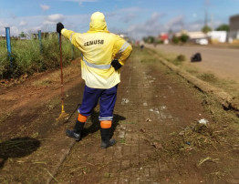 De acordo com a pasta, a equipe, composta de 30 servidores, com a utilização de mini-carregadeira e caçamba, realiza os serviços de roço, capina, rastelagem e varrição no canteiro central e laterais, além do recolhimento de materiais inservíveis e limpeza do meio-fio.