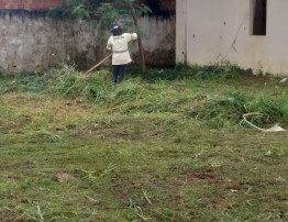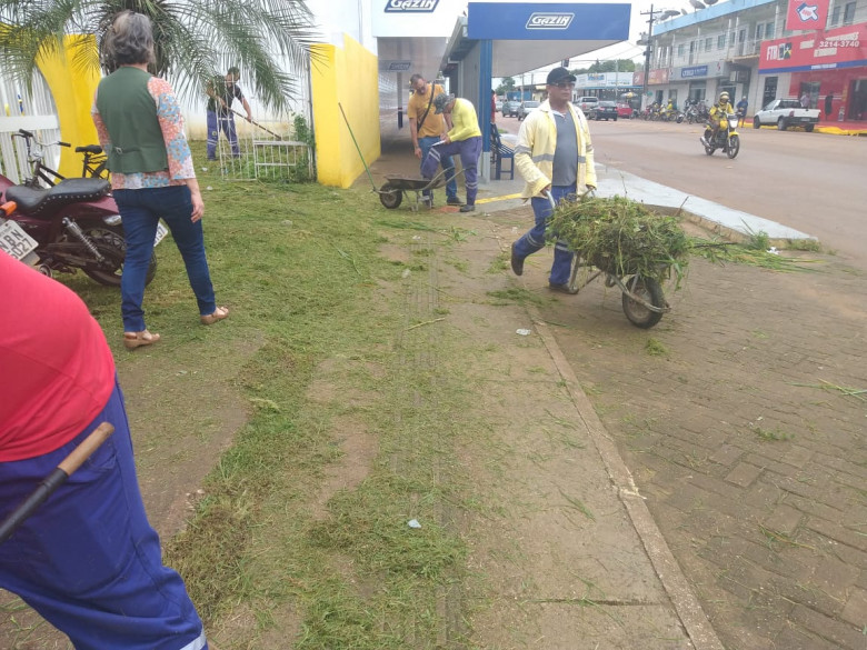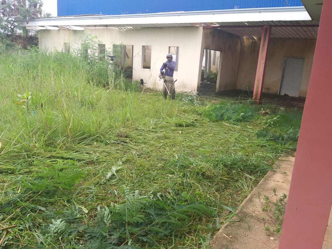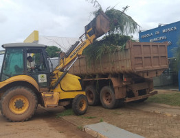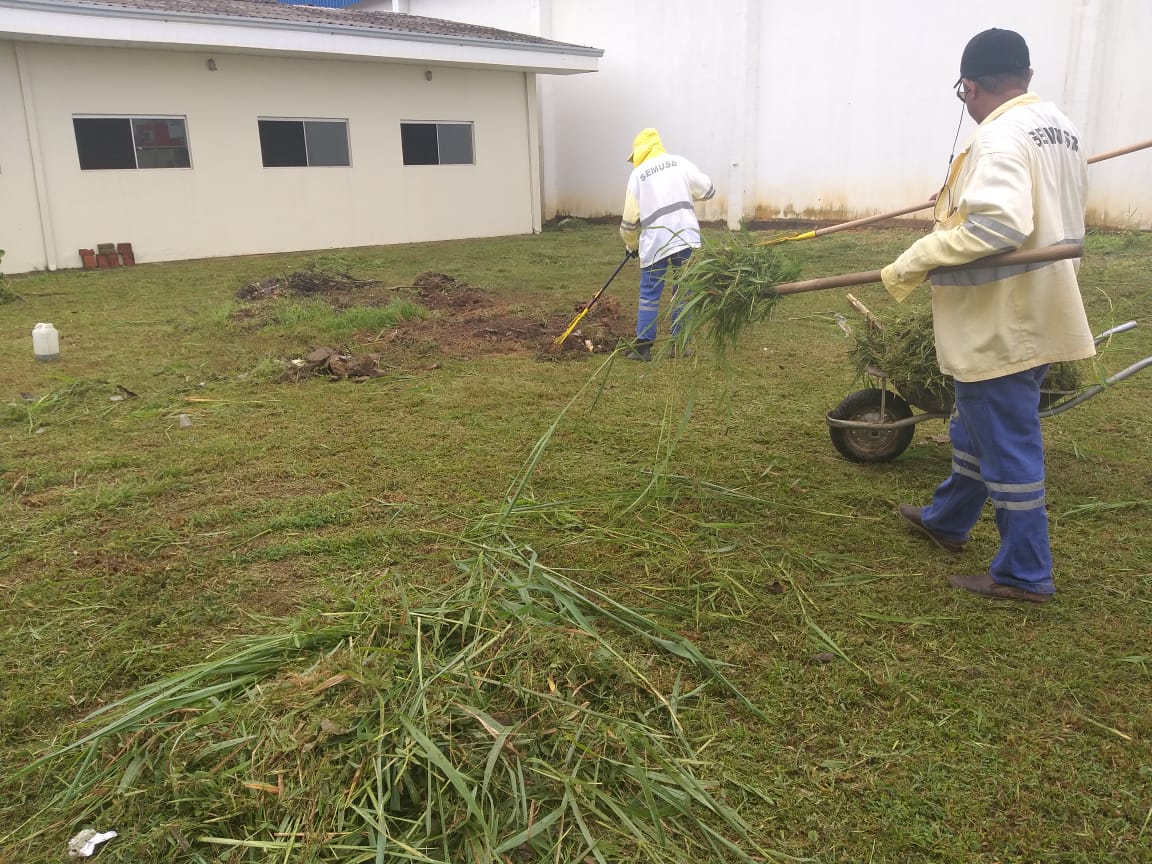 Durante o mutirão, foram feitos os serviços de roço, rastelagem, capina, varrição e recolhimento de materiais inservíveis na parte da frente e no entorno da escola. Na equipe estavam dois roçadores e 10 garis, que contaram com o apoio de máquinas pesadas, como uma retroescavadeira e uma caçamba trucada.