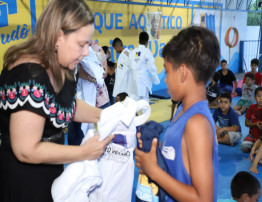 A Prefeitura de Porto Velho entregou, na tarde desta segunda-feira (15/4), a primeira etapa dos uniformes às crianças do programa ‘Talentos do Futuro’. Os alunos do Judô foram os primeiros a receber os kimonos, mas, todas as crianças das 10 modalidades atendidas pelo Município receberão os uniformes gratuitamente.
