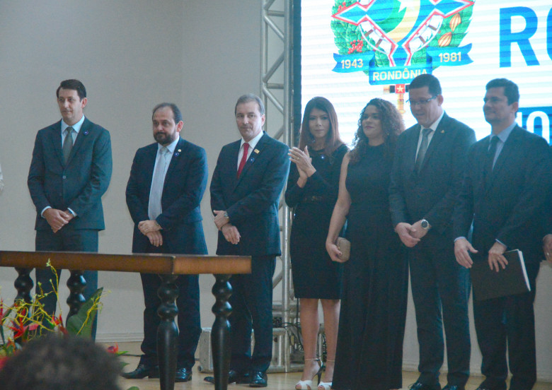 Umas das autoridades políticas especialmente convidadas para a solenidade de lançamento do pacote anticorrupção, Hildon Chaves compôs o dispositivo de abertura ao lado do ministro da Justiça e Segurança Pública, Sérgio Moro, e de outras autoridades federais e estaduais.