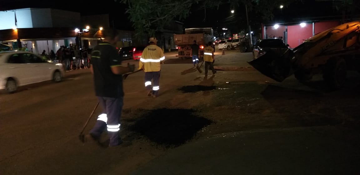 O trabalho de tapa buracos é divido em turnos. Nesta semana, a equipe da noite fez uma verdadeira varredura nas ruas Porto Alegre, entre Calama e Altamira, Altamira, entre Porto Alegre e Florianópolis, Florianópolis, entre Tiradentes e Calama, Cuiabá, entre Rio Madeira e João Pessoa, e João Pessoa, entre rua Cuiabá e Avenida Calama.
