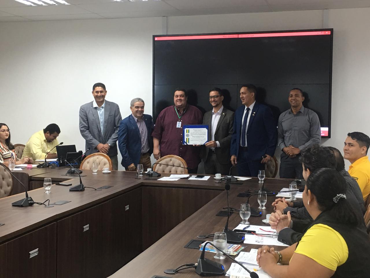 O presidente da Empresa de Desenvolvimento Urbano de Porto Velho (Emdur), Thiago dos Santos Tezzari, foi homenageado pela Assembleia Legislativa de Rondônia, nesta terça-feira (28/5). A entrega do ‘Voto de Louvor’ foi realizada pelo deputado Anderson Pereira, durante cerimônia que aconteceu no Palácio Marechal Rondon, sede do poder legislativo estadual.