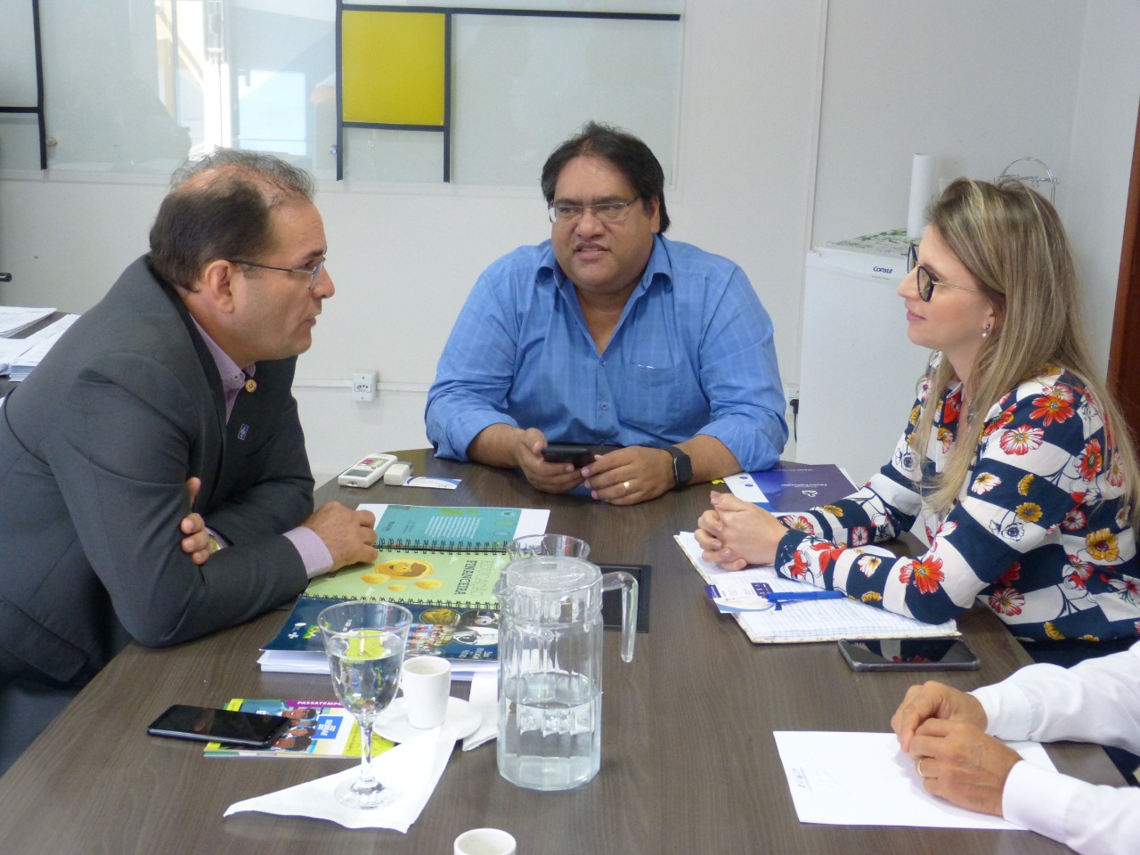 Os secretários municipais de Educação, Márcio Félix e Gláucia Negreiros, titular e adjunta da pasta, respectivamente, receberam no gabinete da Semed, na manhã desta terça-feira (4/6), o superintendente do Sebrae em Rondônia, Daniel Pereira, que solicitou o encontro para falar de parceria que ajude o Município a melhorar seu desempenho no Ideb (Índice de Desenvolvimento da Educação Básica).
