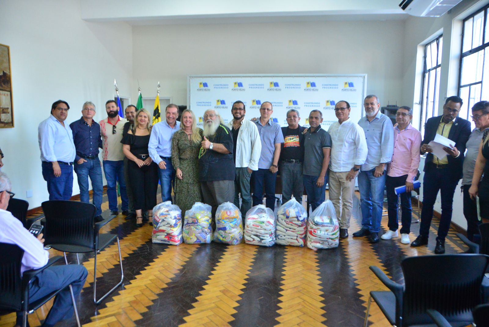 Nesta quinta-feira (27/6), no auditório da Secretária Geral de Governo (SGG), o prefeito Hildon Chaves, acompanhado da primeira-dama, Ieda Chaves, realizou a entrega dos alimentos que foram arrecadados durante o espetáculo ‘O Homem de Nazaré’. No total, foram recebidas 3,5 toneladas de alimentos não perecíveis.