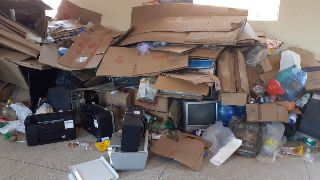 Estão sendo coletados materiais como metal, plástico, embalagens longa vida, papel, eletroeletrônicos