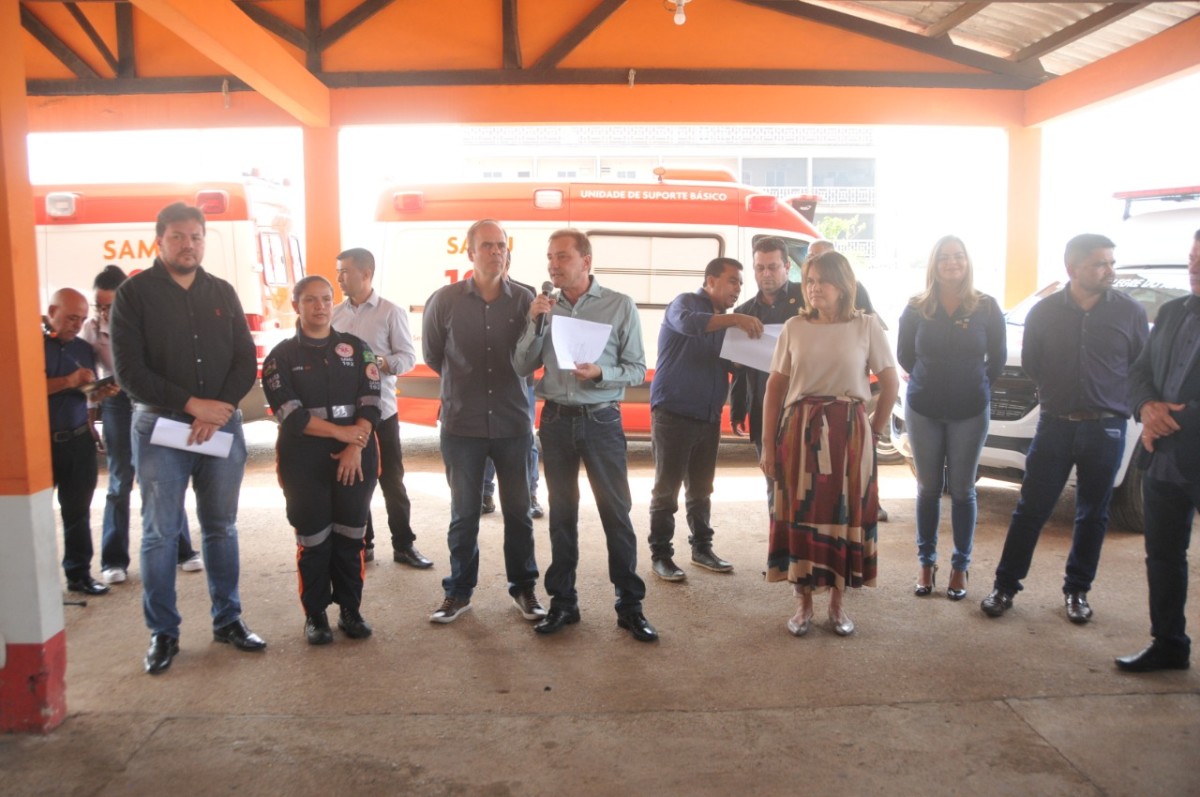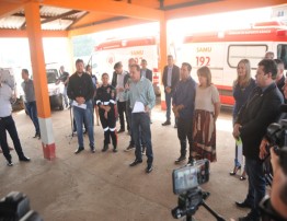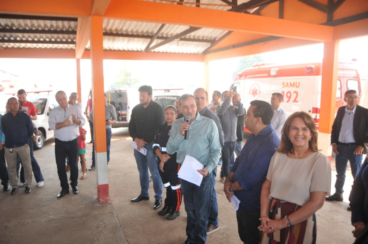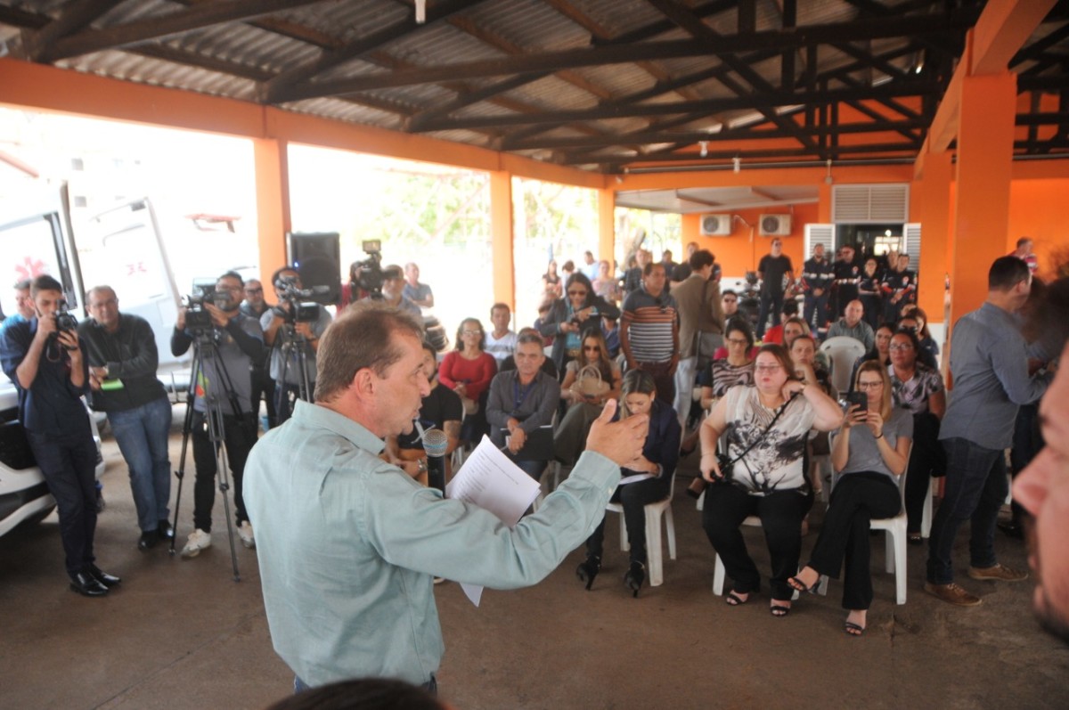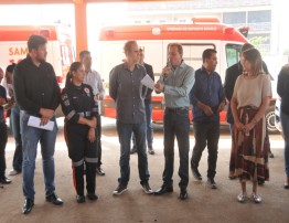 "Encontramos distritos sem ambulância", frisou o prefeito que entregou a chave de uma ambulância à secretária municipal de Saúde, Eliana Pasini, simbolizando as demais viaturas repassadas à Semusa.