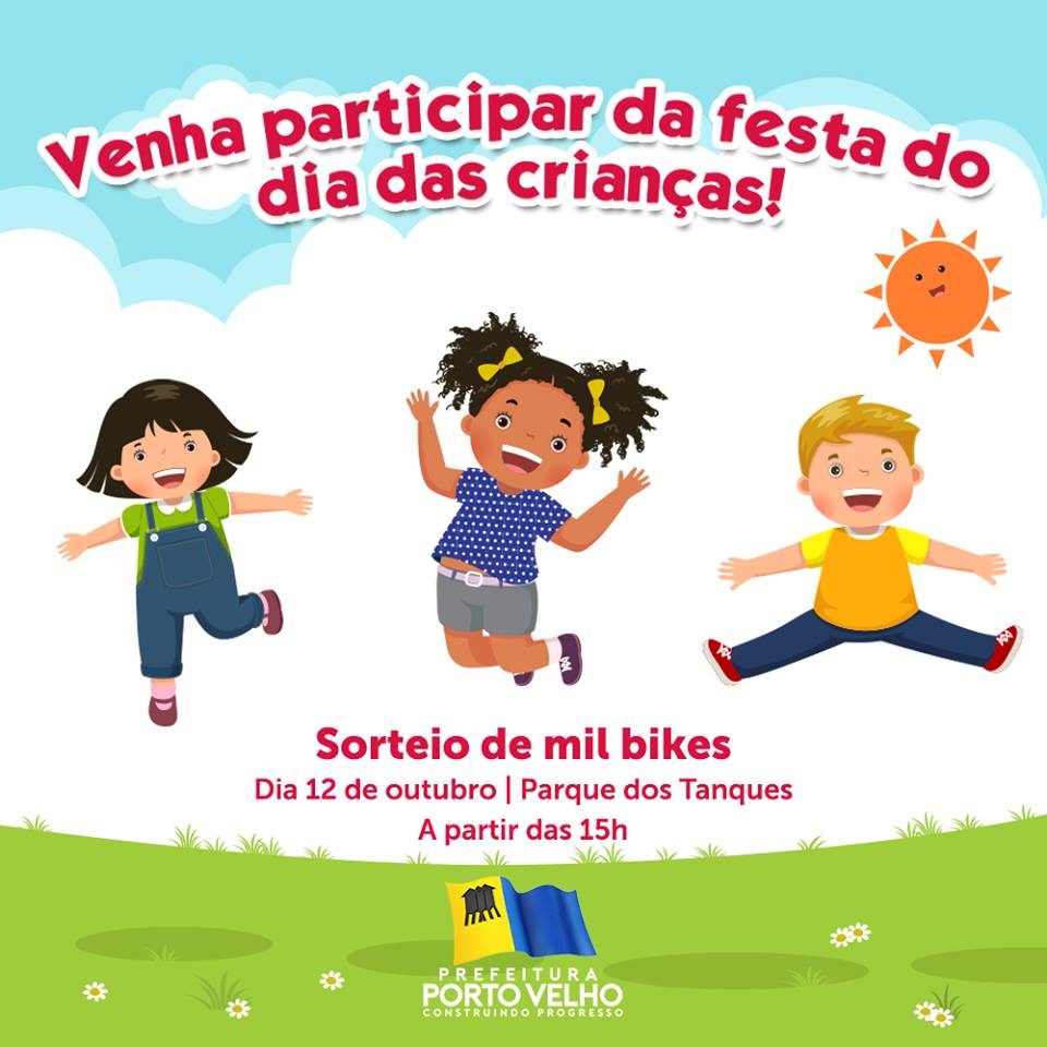 No próximo dia 12 de outubro a Prefeitura de Porto Velho, num evento coordenado pela primeira-dama, Ieda Chaves, realiza mais uma festa do Dia das Crianças. Assim como no ano passado, a comemoração será no Parque dos Tanques, a partir das 15h.