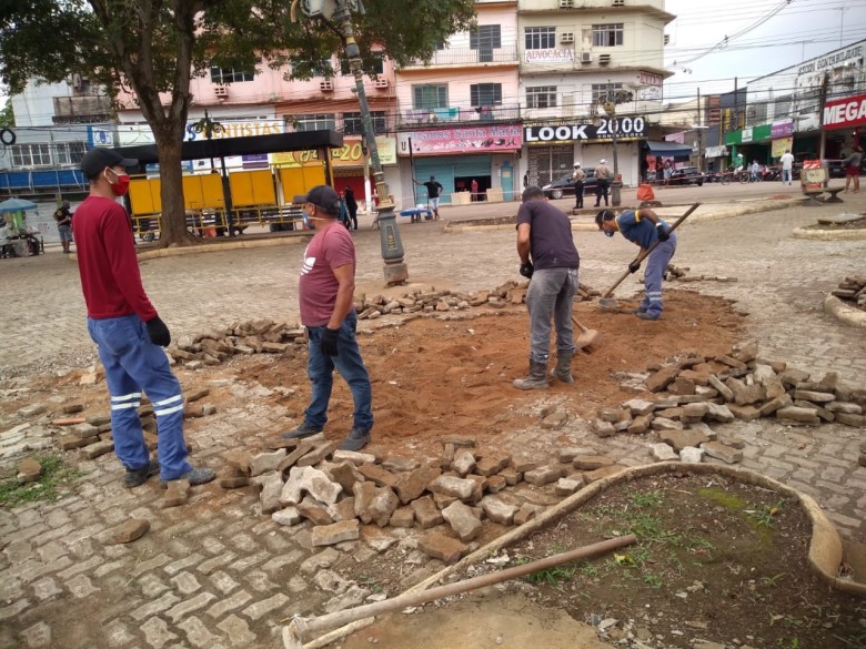 Logo em seguida, conforme orientações do prefeito Hildon Chaves, a Semusb entrou com sua equipe e iniciou as obras de reconstrução da Praça, refazendo o calçamento, o meio-fio e a parte revestida com paralelepípedos.