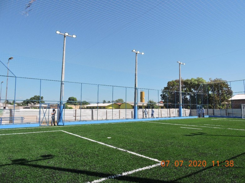 O espaço conta ainda com alambrado, rede de cobertura, traves, iluminação do campo composta de seis postes, sendo 18 luminárias de led 400w, calçada com acessibilidade e bancos de concreto.