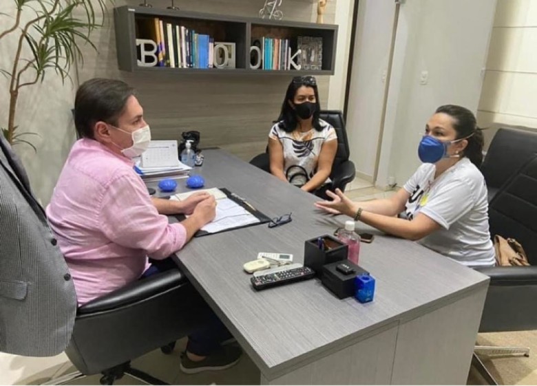 A gerente da Divisão Comercial e Industrial, Adriana Bandeira, e a gerente da Divisão Socioeconômica, Thais Manuela, ambas da Secretaria Municipal de Indústria, Comércio, Turismo e Trabalho (Semdestur), debateram o assunto com o presidente da Fecomércio, Raniery Coelho.