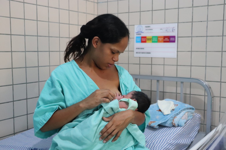 Quase 100% das crianças nascidas na maternidade Mãe Esperança recebem a primeira amamentação ainda no local. Apenas em casos pontuais não se enquadram neste cenário.