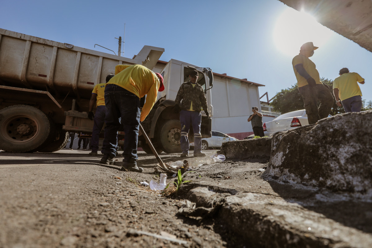 Servidores da Semusb realizaram a limpeza dos locais que serviam de abrigo a usuários de drogas, enquanto equipes de assistência social da Semasf realizaram as transferências dos moradores à unidade de acolhimento.