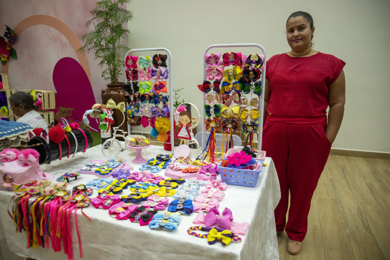 “Esta é uma oportunidade para nossas mães empreendedoras venderem um pouco mais nesta data tão especial que é o Dia das mães. Aqui estamos com 32 mulheres empreendedoras que estão vendendo seus produtos nesse evento. São mães que trabalham e vivem daquilo que elas fazem, principalmente o artesanato”, explica Gina Brito, diretora do DPPM.