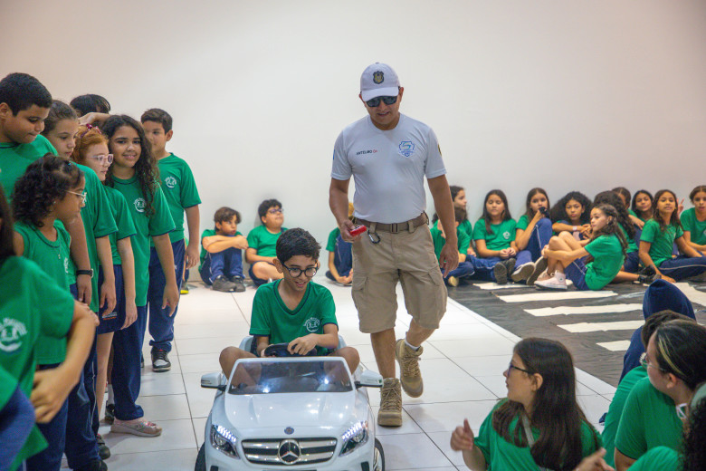 Ensinamentos lúdicos sobre a importância do cumprimento das leis de trânsito, e orientações sobre respeito ao próximo e proteção à vida, foram repassados pela Secretaria Municipal de Trânsito, Mobilidade e Transporte (Semtran) para mais de 80 estudantes da escola Santa Marcelina, na manhã desta sexta-feira (12), no Porto Velho Shopping.