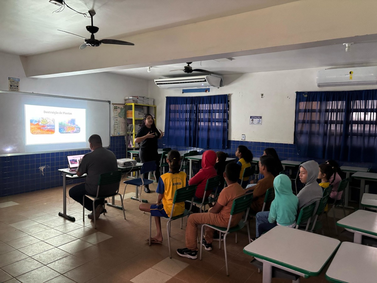 Abordando o tema “Queimadas”, a equipe da Sema, na quinta-feira (3), esteve na EMEIF Francisco José Chiquilito Coimbra Erse, localizada à Estrada 28 de Novembro, KM 42, Aliança, zona rural de Porto Velho, onde os palestrantes Cleovania Pontes e Wildejane Alves, mais o animador Lucas Sales, falaram dos impactos ambientais causados pelas queimadas e também incentivar ações preventivas.