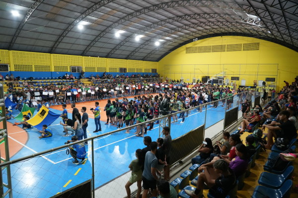 Com arquibancadas lotadas, foi dada a largada oficial para a Copa Madeirão de Futsal 2025, na noite de quarta-feira (8), no Ginásio Poliesportivo Eduardo Lima e Silva (Ginásio Dudu). O evento é realizado pela Prefeitura de Porto Velho, por meio da Secretaria de Turismo, Esporte e Lazer (Semtel), e reúne 90 equipes e cerca de 1.300 atletas.