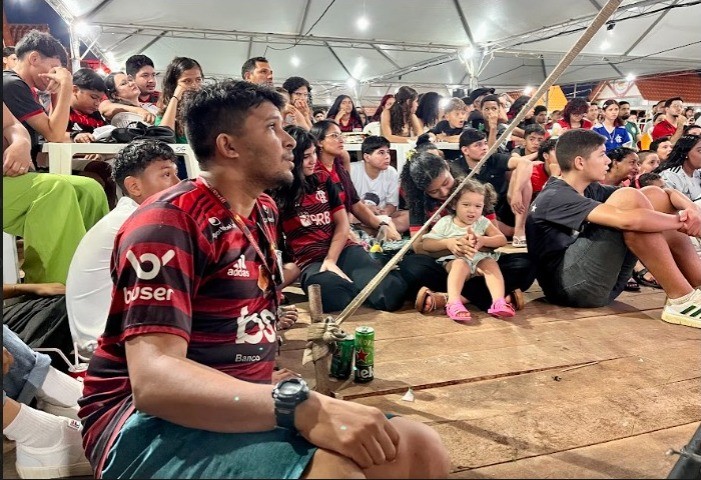 Os telões instalados para a transmissão foram montados em parceria entre a Emdur e a Prefeitura de Porto Velho, garantindo som e imagem adequados para o público. Os 200 conjuntos de mesas, com 800 cadeiras, ficaram ocupados. Famílias chegaram uniformizadas, com camisas e bandeiras, e cada espaço disponível virou lugar de torcida.