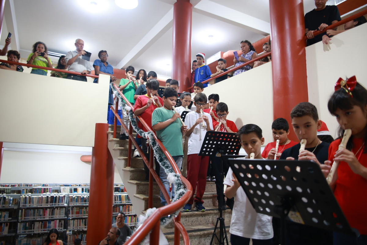 Histórias como a dela deram o tom da cantata de Natal realizada na noite de sexta-feira (12), na Biblioteca Francisco Meirelles. O evento foi realizado em parceria com o Centro Municipal de Arte e Cultura Escolar Jorge Andrade e reuniu crianças, jovens e familiares em uma celebração marcada pela música e pelo espírito natalino.