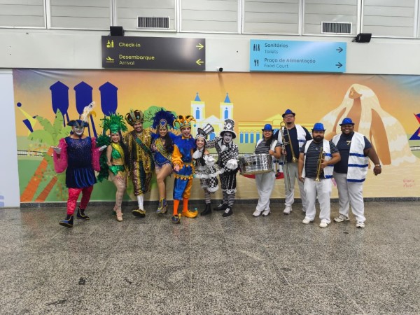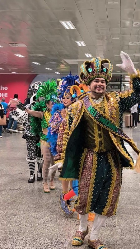 Na noite da última quinta-feira (06/02), a corte do Rei Momo transformou os saguões da rodoviária e do aeroporto de Porto Velho em verdadeiros pontos de celebração carnavalesca.