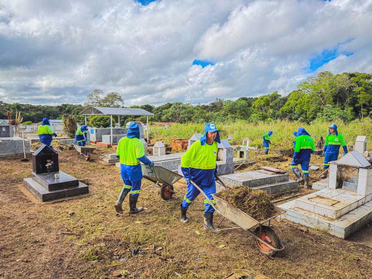 A ação acontece nos cemitérios Cemitério Santo Antônio, Cemitério dos Inocentes e Cemitério da Candelária, onde equipes trabalham intensamente para garantir um ambiente limpo, seguro e organizado para homenagens aos entes queridos.
