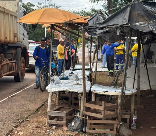 Ação na Av. Guaporé removeu estruturas e orientou trabalhadores sobre regularização.