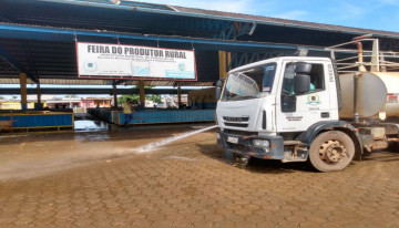 Além da limpeza nas ruas, garis da Semusb lavaram o estacionamento da feira do Produtor