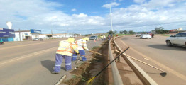 Semusb realiza serviço de limpeza no canteiro da BR-364